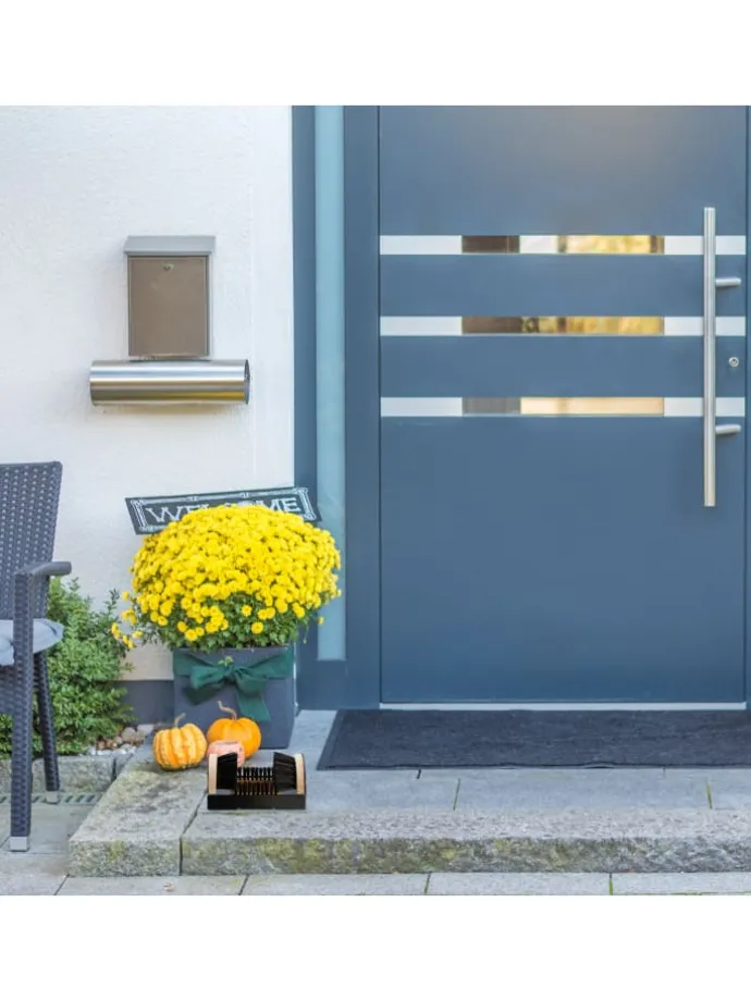 Der Schuhabtreter mit Rundum-Bürsten ist ein starker Mitstreiter, wenn Sie verdreckte Stiefel, Arbeits- oder Gartenschuhe schnell und unkompliziert von grobem Schmutz befreien wollen. Dem Dreck rücken Sie mit 4 Schuhbürsten auf einmal zu Leibe, die mit stabilen Kunststoff-Borsten ausgestattet sind. Dafür brauchen Sie sich nicht extra zu bücken. Die Bodenbefestigung (Montagematerial enthalten) ermöglicht eine rutschfeste Schuhreinigung im Außenbereich.