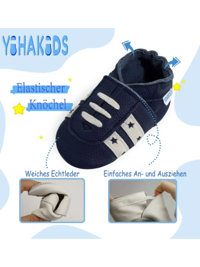 Knöchelriemen garantiert, dass die Schuhe auch beim Spielen und Krabbeln nicht verrutschen. Diese Lederschuhe sind die perfekte Wahl als Hausschuhe,Krabbelschuhe oder erste Lauflernschuhe – ein liebevolles Geschenk für jedes Baby und Kleinkind.