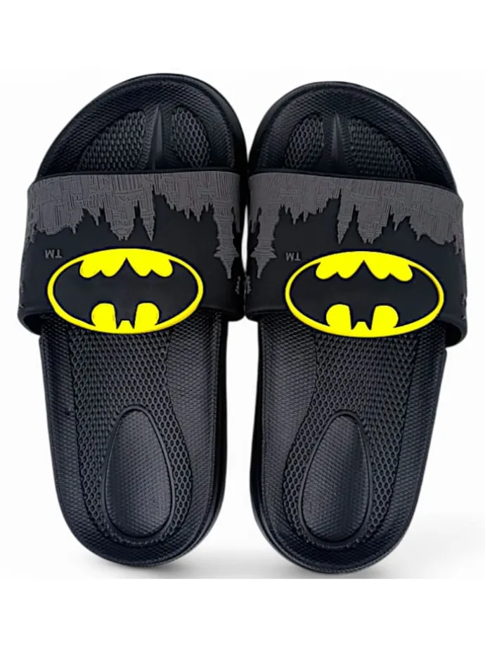 Mit diesen coolen Batman-Pantoletten schlüpfen kleine Superhelden in die Rolle ihres Lieblingshelden.