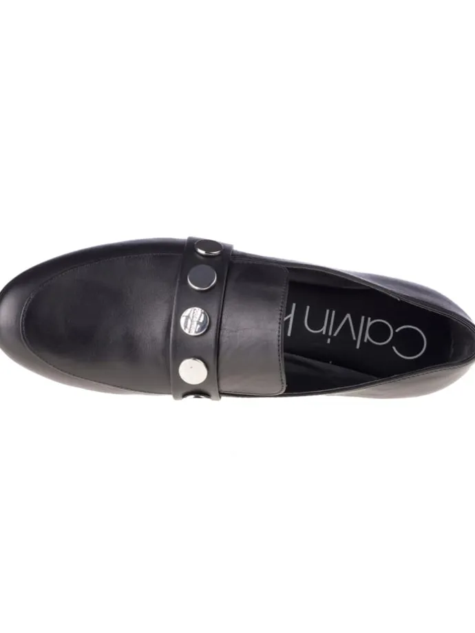 Calvin Klein Ola Nappa W E8892BLK. Halbschuhe für Damen. Farbe: Schwarz, Material: Narbenleder, Verschlussart: Slip-On, Schuhspitze: Rund.