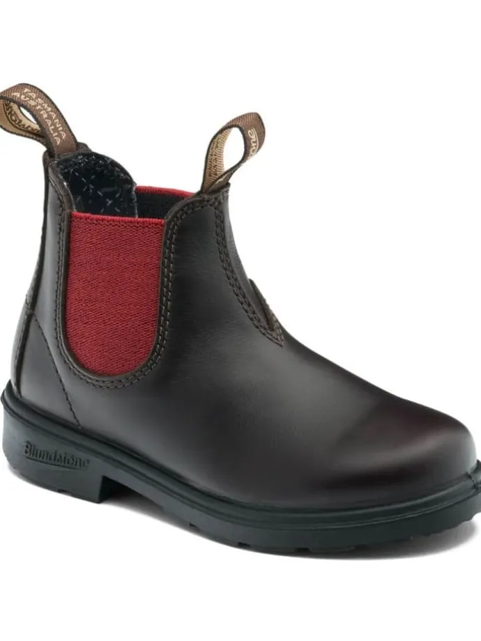 Der Blundstone #2590 in Brown/Crimson kombiniert robustes braunes Leder mit den leuchtend roten Elastikeinsätzen, die an die Farbe reifer Kirschen erinnern. Ein lebendiger und dennoch klassischer Look, der jedes Abenteuer im Freien begleitet und dabei für jedes kleine Paar Füße Komfort bietet. Dieser Stiefel bringt nicht nur Stil, sondern auch die bewährte Blundstone-Qualität in die Welt der kleinen Entdecker.