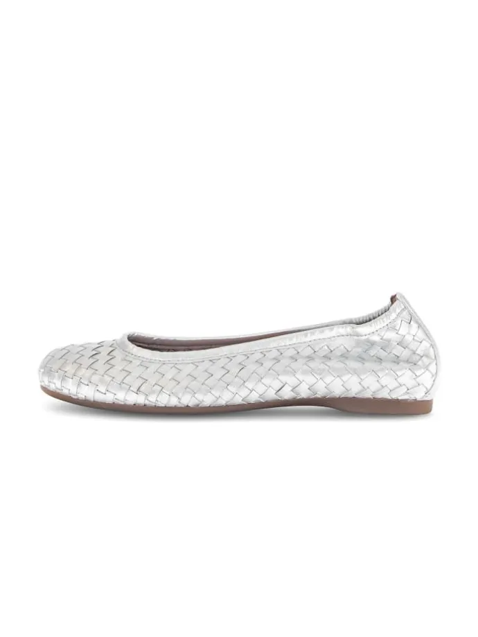 Elegante Ballerinas der Gabor Marke Gabor wollen Frauen am liebsten nie wieder ausziehen. Das Obermaterial in silber aus hochwertigem Effektleder macht dieses Modell zur extravaganten Wahl. Schuhweite F (normal) bedeutet, dass die Ballerinas perfekt für schmale bis normale Damenfüße geeignet sind. Aufgrund der Best-Fitting-Ausstattung freut sich die Trägerin über eine verbreiterte Auftrittsfläche im Ballenbereich und mehr Komfort.