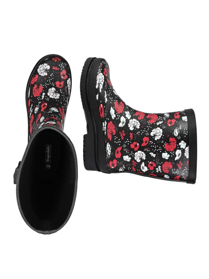 Der Regenliebe Gummistiefel Blossom Night mit seiner Profilsohle und der Randverstärkung ist nicht nur rutschfest, sondern auch wasserdicht und angenehm zu tragen. Das Material und das textile Innenfutter mit der herausnehmbaren Innensohle überzeugen alle Regenstiefel-Fans. Das coole Muster sieht hübsch aus und macht das schlechteste Wetter zu einem Highlight.