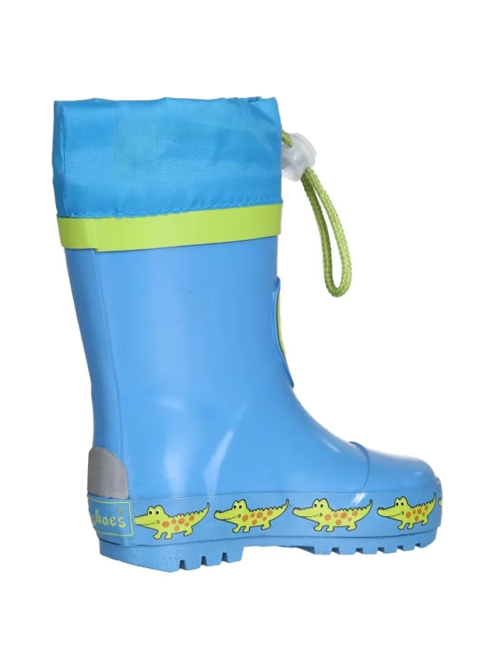 Der ideale Begleiter für verregnete Tage: Mit den wasserdichten Kinderstiefeln macht das Spielen und Herumtollen an der frischen Luft besonders viel Spaß. Die an der Rückseite der Matsch-Stiefel angebrachten Reflektoren sorgen für mehr Sicherheit im Dunkeln oder bei schlechtem Wetter. Mit dem praktischen Zugband und Stopper an der Stulpe kann das Eindringen von Regen verhindert werden. Die Sohle hat eine praktische Vertiefung, in der man den elastischen Fußsteg von Regen- und Matschhosen fixieren kann. So wird das Hochrutschen der Hosenbeine verhindert. Mit den schicken Schlupf-Stiefeln aus hochwertigem Natur-Kautschuk sind die Kleinen auch bei schmuddeligem Wetter gut und passend gekleidet. – Obermaterial: Sonstiges Material – Futter & Decksohle: Textil – Laufsohle: Sonstiges Material