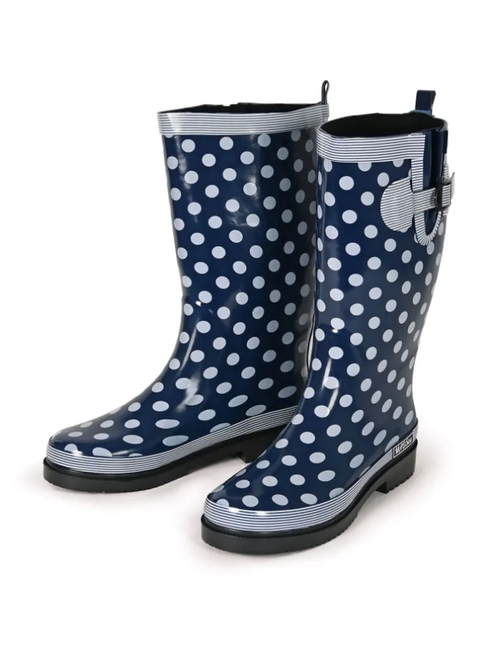 Regenwetter und keine passenden Gummistiefel – kein Problem, denn der MADSea Damen Langschaft Gummistiefel Modell Ocean High – dunkelblau mit weißen Punkten bietet jedem Regenwetter die Stirn! Der Stiefel ist aus Gummi und wasserdicht, sowie rutschfest mit seiner robusten Profilsohle. Warm und weich durch das textile Innenfutter und die herausnehmbare kälteisolierende Einlegesohle. Schick und modern mit der praktischen Schnalle und Dehnfalte an der Seite, sowie dem kleinen Absatz. Diese schicken Regenstiefel sollten auf keinem Regenausflug fehlen!