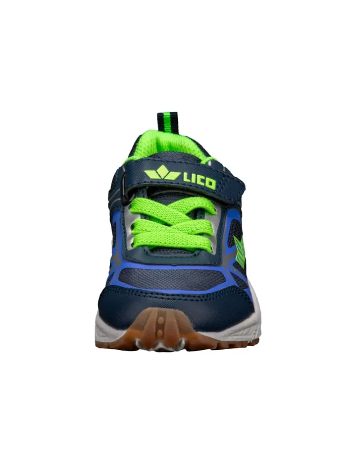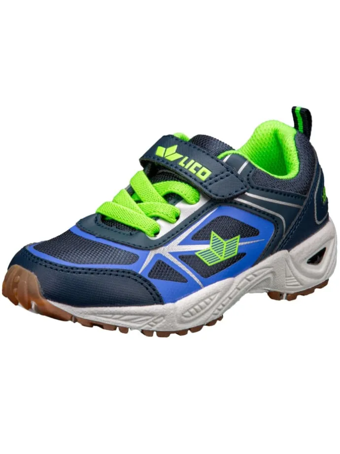 Sportschuh Salford VS für Kinder und Jugendliche von Lico; Obermaterial aus atmungsaktivem Mesh mit Synthetik-Besätzen; praktischer Klettverschluss und elastische Schnürsenkel für einfaches An- und Ausziehen; weiches Textilfutter; auswechselbare Textileinlegesohle; stabile TPR-Laufsohle für die Halle geeignet; aufgedrucktes Größenmesssystem bis Größe 35 zur Bestimmung der optimalen Schuhgröße