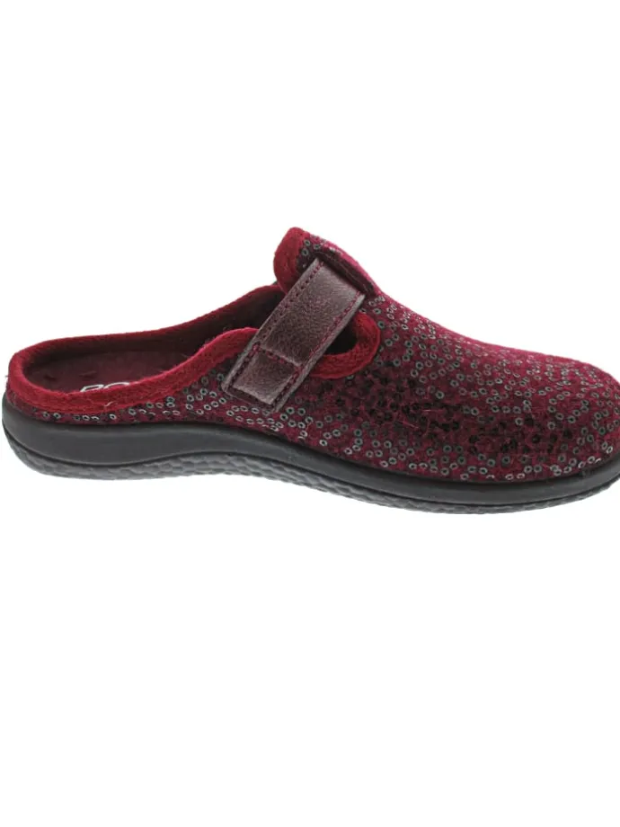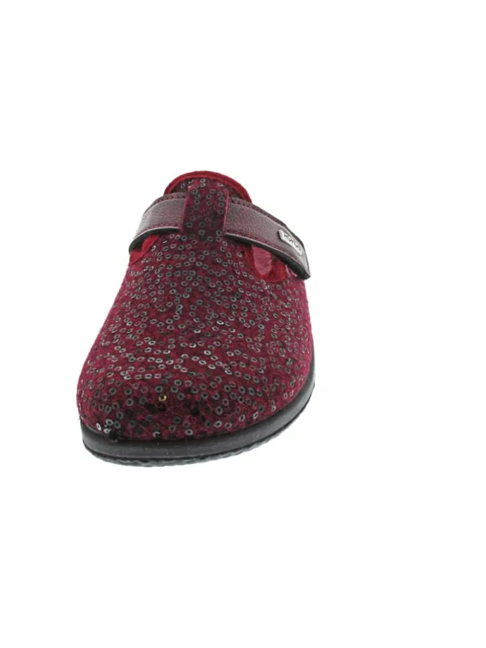 – moderner und bequemer Schnitt – supersoftes Innenfutter aus Filz – Wechselfußbett aus Filz – flexible und leichte Laufsohle – gute Rutschfestigkeit – umsäumter Schaftabschluss – weitenverstellbares Riemchen mit Klettverschluss – Weite: G – Bequemweite, hoher Tragekomfort, sehr gute Passform – bequemer Hausschuh mit Pailetten verziert
