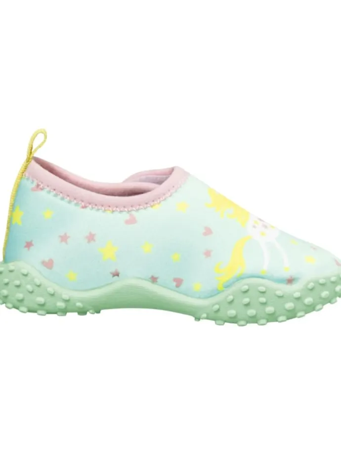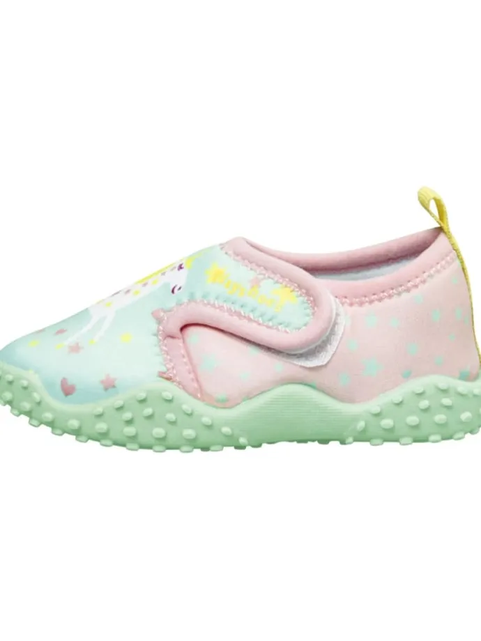 Produkteigenschaften:Egal ob am Strand oder im Schwimmbad, mit diesen praktischen Aqua-Schuhen ist ihr Kind bestens für die Badesaison gerüstet.Die Aquaslipper haben eine rutschhemmende TPR Sohle und schützen die Füße rundherum vor spitzen Steinen und heißem Sand.Der praktische Klettverschluss ermöglicht ein schnelles An- und Ausziehen der Bade-Sneaker und gibt zusätzlich einen guten Halt im Schuh. Playshoes – hochwertige und modische Kollektionen für KinderMit Liebe zum Detail und unter Verwendung hochwertiger Materialien produziert die Firma Playshoes seit mehr als 20 Jahren modische Kollektionen für Kinder. Gegründet wurde das Unternehmen 1997 von der Familie Schreyeck in Albstadt-Margrethausen. Damals begann alles mit einem Babyschuh. Mittlerweile hat sich das Produktsortiment auf über 8.000 Artikel erweitert.Playshoes steht für ein ausgewogenes Preis-/Leistungsverhältnis und die Konzentration auf das Wesentliche, nämlich Kollektionen mit hohem Tragekomfort und die Erfüllung modischer Ansprüche zu entwickeln. Heute liefert Playshoes aus dem baden-württembergischen Onstmettingen ihre Kollektionen in über 40 Länder. Mit innovativen Ideen und Kreativität setzt Playshoes Maßstäbe.