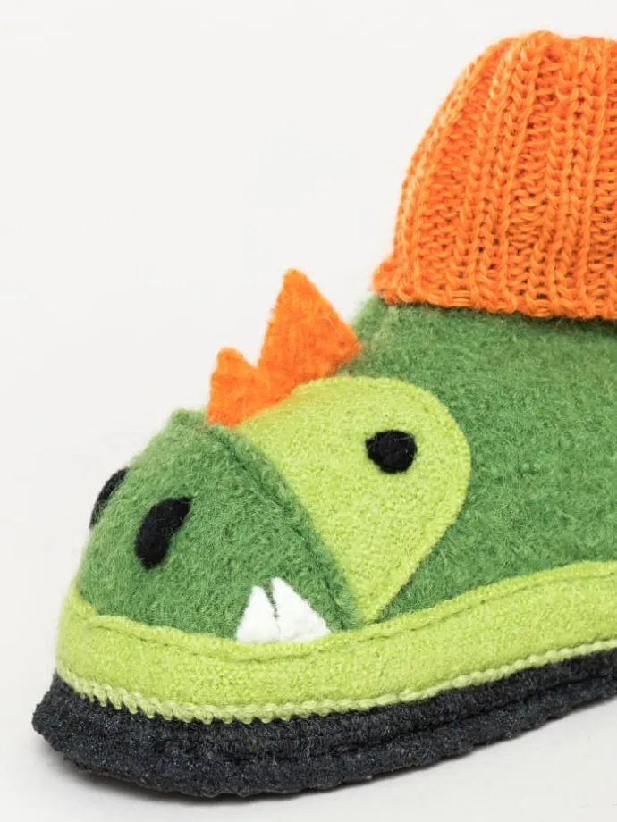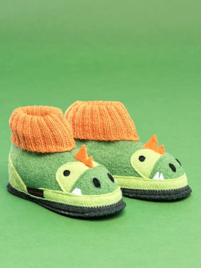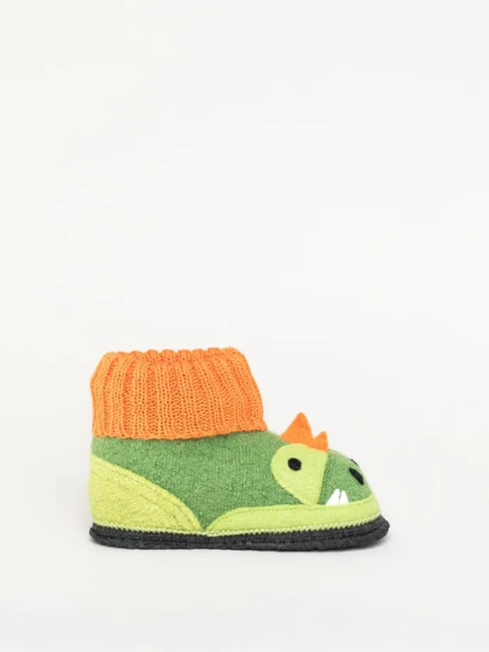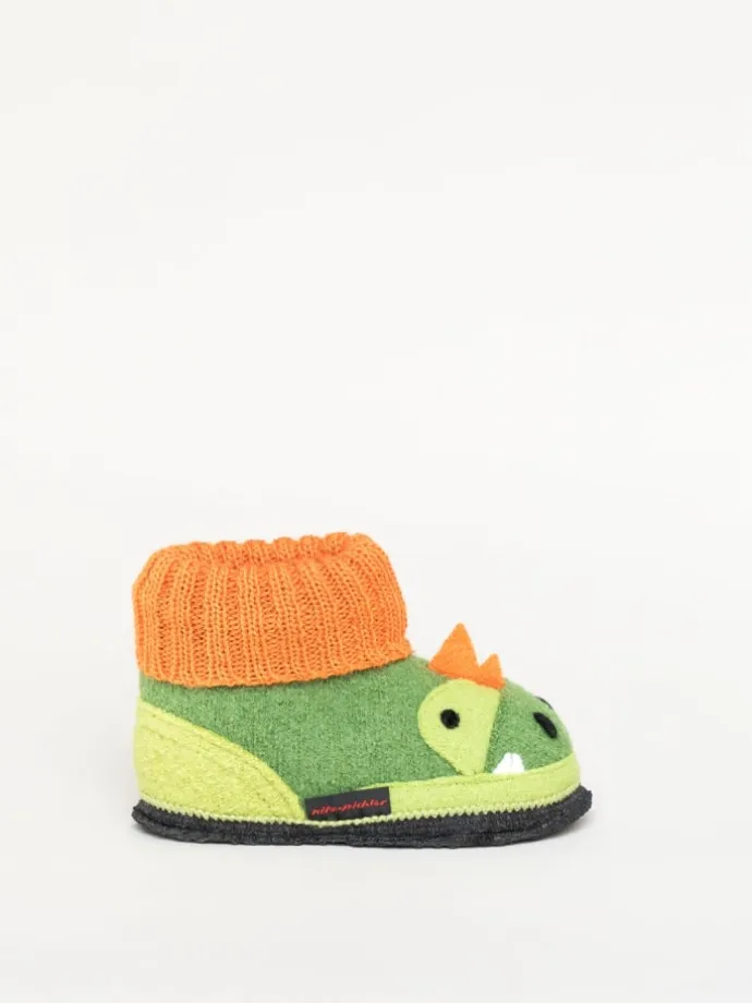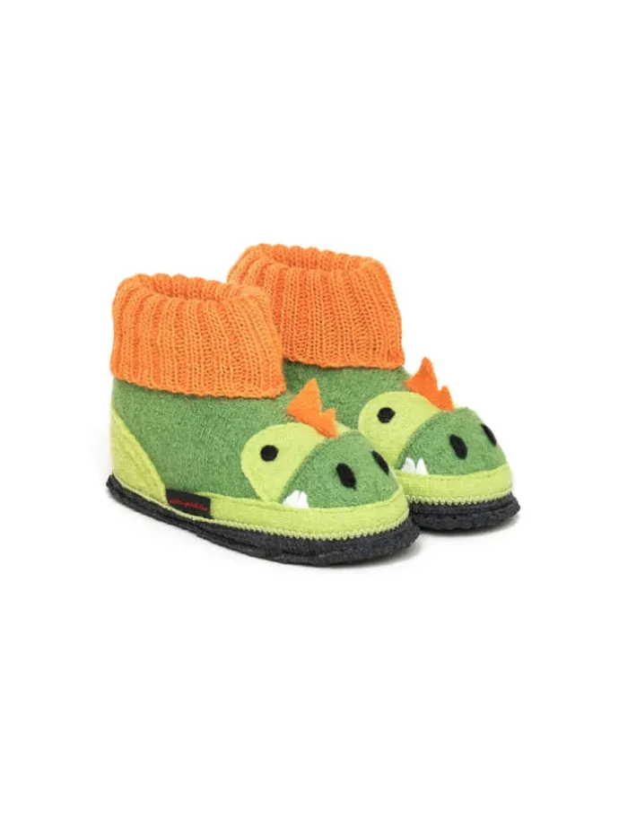Unser Dago Hüttenschuh speziell für Kinder ist ein Muss für alle kleinen Tierfreunde. Er besticht durch sein einzigartiges Design und seiner in Latex getränkten Filzsohle. Durch die weichen Strickbündchen ist er rasch an- und ausgezogen und gibt trotzdem genügend Halt zum Herumtollen. Das Obermaterial aus 100% reiner Schurwolle aus hauseigenem Walkstoff sorgt für wohlig warme Kinderfüße und ein angenehmes Fuß-Klima. Waschbar in der Waschmaschine bei 30°C.