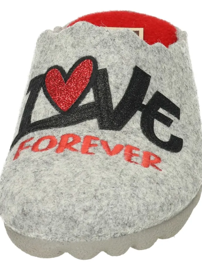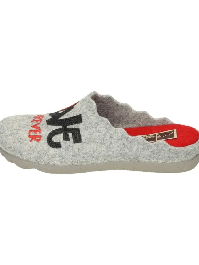 Bei diesem Produkt handelt es sich um einen Schuh aus der Kategorie Klassische Hausschuhe für Damen. Als Obermaterial wurde Filz verwendet und im inneren Bereich des Schuhs wurde ungefüttert und Filzdecksohle verarbeitet. Die Schuhweite dieses Artikels ist normal und somit standard. Als Verschlussart wurde Schlupfschuh gewählt und die TR-Sohle rundet das Produkt ab. Der Artikel fällt normal aus, bitte die gewohnte Größe bestellen. Obermaterial : Filz | Futter : ungefüttert | Decksohle : Textildecksohle | Laufsohle : TR-Sohle