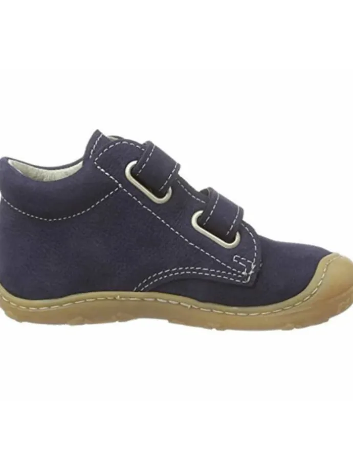 Knuffig weiche Lauflernschuhe für Jungen aus hochwertigem Nubukleder. Innen cromfrei gegerbt. Klettverschluss für einfaches An- und Ausziehen sorgt für guten Halt. Laufsohle aus Gummi, normale Weite.