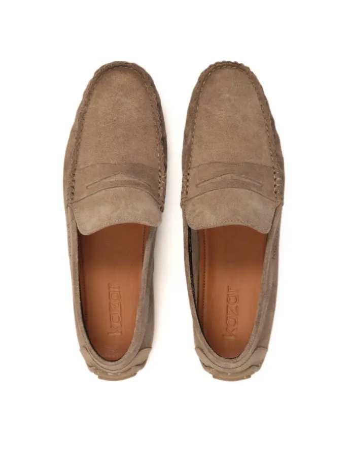 Dieblauen Mokassins aus hochwertigem Veloursleder sind ein semi-formelles Schuhwerk, das sowohl zu legeren als auch zu etwas eleganteren Smart-Casual-Outfits passt. Die klassische Form zeichnet sich durch markante Nähte auf der Vorderseite, eine leicht erhöhte Spitze und eine flexible Sohle aus. Die bequeme Stollensohle gibt Halt und macht das Gehen stabil und sicher. Ein interessanter Akzent ist das in Leder geprägte KAZAR-Logo an der Seite des Schaftes. Der größte Vorteil der Schlupfschuhe ist das einfache An- und Ausziehen der Schuhe.