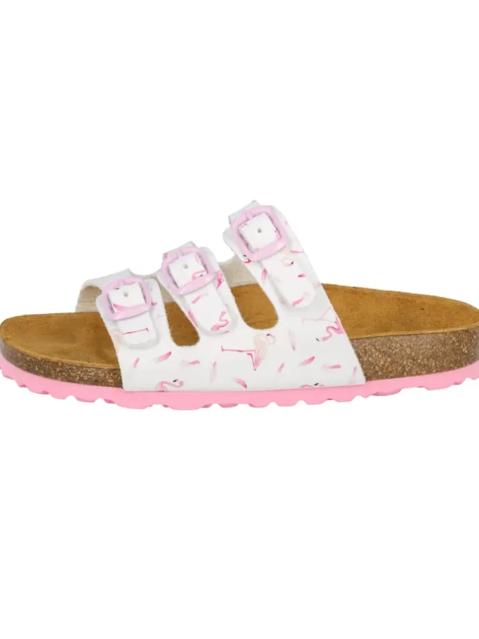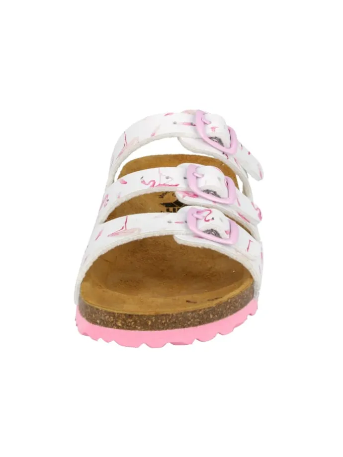 Pantolette für Kinder aus Synthetik, verstellbare Schnallen, Lederdecksohle und dämpfungsaktive EVA-Laufsohle. Fußbett: Kork/Kautschuk