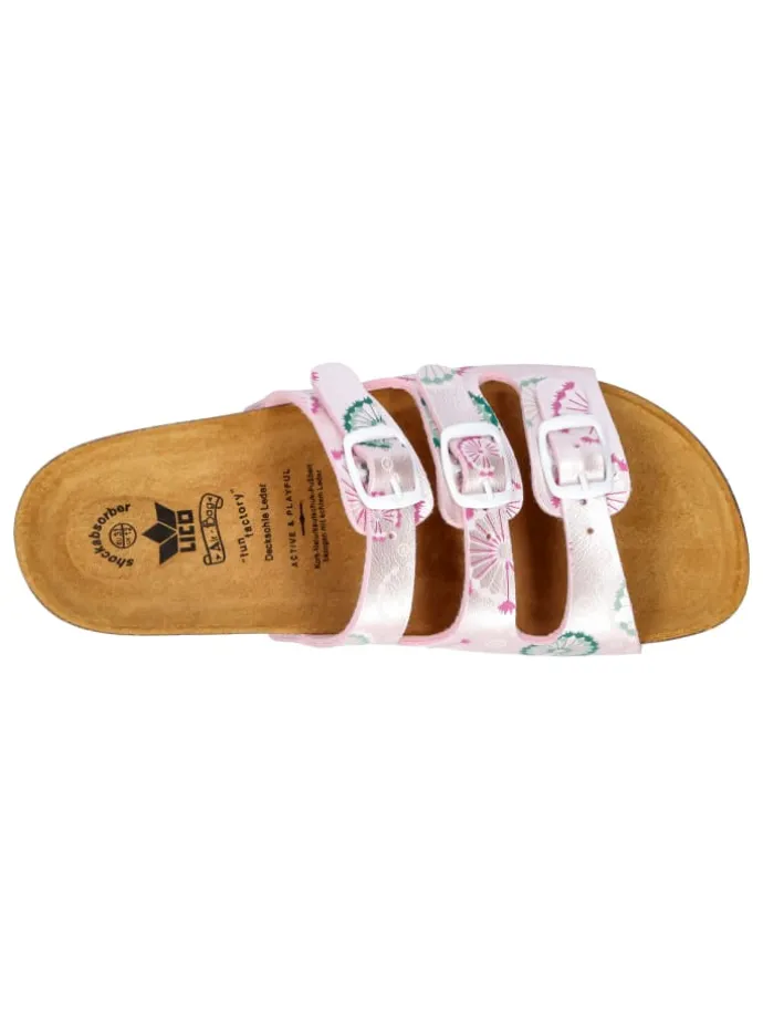 Die Bioline Flower Kids von Lico sind die perfekte Wahl für Kinder und Jugendliche, die bequeme und stylische Pantoletten suchen! Mit ihrem strapazierfähigen Obermaterial aus Synthetik bieten sie eine robuste Qualität, die den täglichen Anforderungen spielend standhält. Dank der zwei individuell verstellbaren Schnallen passt sich die Pantolette optimal an die Fußform an und sorgt für einen sicheren Halt. Das hochwertige Fußbett aus einer Kork-Kautschuk-Mischung stützt den Fuß und bietet maximalen Komfort ? ideal für lange Tage voller Aktivitäten. Die weiche Lederdecksohle trägt zu einem angenehmen Tragegefühl bei und unterstützt das natürliche Fußklima. Die dämpfungsaktive EVA-Laufsohle sorgt für ein leichtes, flexibles Trageerlebnis und entlastet die Füße bei jedem Schritt. Die Bioline Flower Kids vereinen Funktionalität und Style ? perfekt für kleine Abenteurer und trendbewusste Jugendliche! Mit dem bewährten Lico-Qualitätsstandard ist diese Pantolette ein zuverlässiger Begleiter für Alltag und Freizeit.