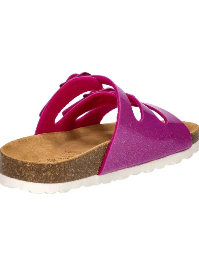 Die Coole Pantolette für Kinder wurde aus einem angenehm weichem Synthetik gefertigt. Durch die drei verstellbare Schnallen kann die Pantolette optimal am Fuß angepasst werden. Das Fußbett besteht aus einem Materialmix von Kork und Kautschuk und wurde mit einer Lederdecksohle überzogen. Die dämpfungsaktive EVA-Laufsohle runden die Ausstattung dieser Pantolette ab.