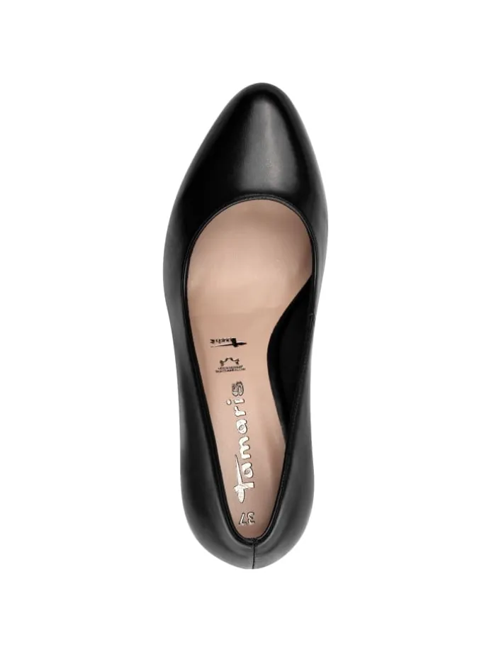 Erlebe mit diesen eleganten Pumps zeitlose Raffinesse und Komfort in einem. Das hochwertige Leder-Obermaterial, kombiniert mit stabiler Sohle und attraktiven Details, macht sie zur idealen Wahl für Büro, Abendveranstaltungen oder feierliche Anlässe. Ihre spitze Schuhspitze und der geschmeidige Blockabsatz von 7,0 cm geben deinem Auftritt eine besonders feminine Note. Verfügbar in Schwarz, Beige und Blau, begleiten sie dich stilvoll durch das ganze Jahr und werten jedes Outfit auf.