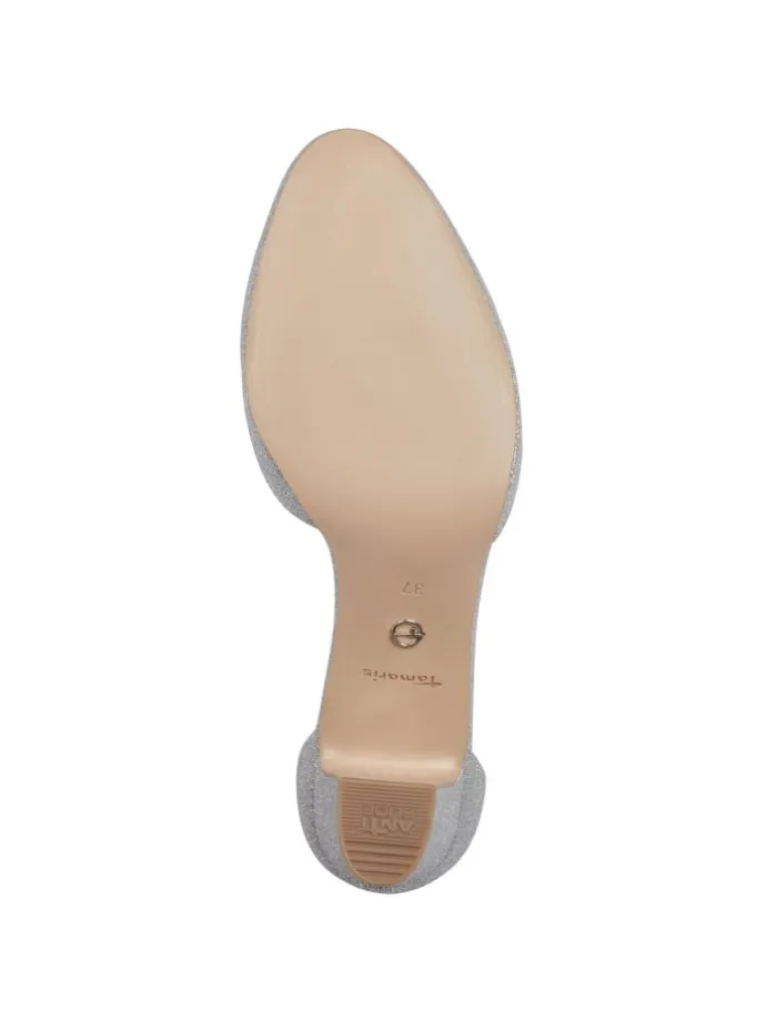 Gleite stilvoll durch festliche Anlässe mit diesen eleganten Pumps, die aus einem ansprechenden Materialmix gefertigt sind und durch eine glitzernde Oberfläche bestechen. Ihr klassisches Design in sanften Farbtönen wie Weiß und Roségold fügt sich harmonisch in jede Garderobe ein und verleiht dir eine feminine Note. Der stabile Blockabsatz von 6,0 cm sorgt für angenehmen Tragekomfort, während die modischen Riemchen mit Schnalle alle Blicke auf sich ziehen. Ideal für Hochzeiten und Abendveranstaltungen.