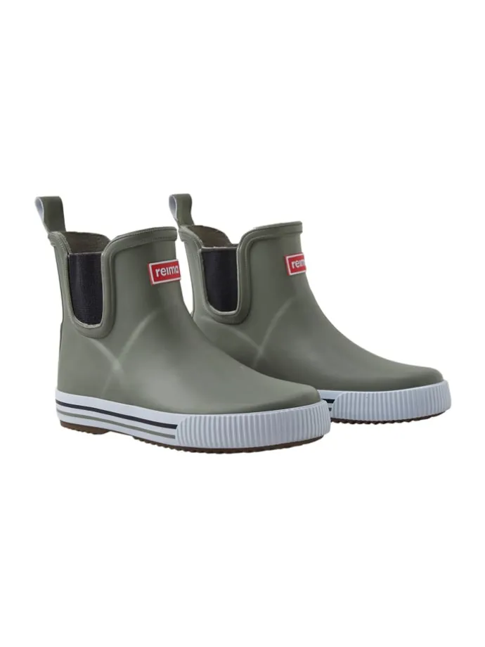 Mit diesen knöchelhohen Kindergummistiefeln darf der Spaziergang in der Stadt auch durch Pfützen führen! Die Laufsohle ist aus vulkanisiertem, PVC-freiem Gummi hergestellt, und das Baumwollfutter sorgt für Komfort. Da die Reima Kinderregenstiefel über herausnehmbare Innensohlen mit Happy-Fit-Druck verfügen, lässt sich die richtige Größe leicht feststellen.