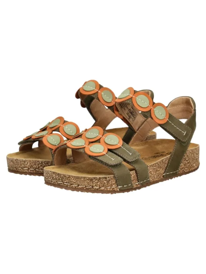 Eine sommerliche Sandale von Josef Seibel. Drei Klettverschlüsse können dabei individuell verstellt werden und sorgen für eine gute Passform innerhalb des Schuhs. Das Lederfußbett sorgt für ein angenehmes Tragegefühl. Tolle Details machen die Riemchensandale zu einem Blickfang.