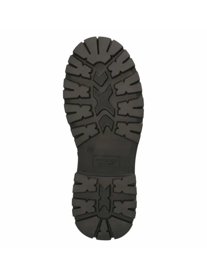 Robust, stilvoll und kindgerecht: Der Dockers Chelsea Boot kombiniert zeitloses Schwarz mit einem auffälligen Elastikeinsatz im Animal-Look. Das Obermaterial aus Textil & Synthetik ist strapazierfähig, der 4 cm Blockabsatz und die rutschfeste Laufsohle bieten zuverlässigen Halt bei wechselhaften Bedingungen. Der seitliche Reißverschluss, zwei Anziehlaschen und die verstärkte Ferse stehen für Komfort und einfache Handhabung im Alltag. Ein warmes Futter sowie die weiche textile Decksohle sorgen für angenehmes Fußklima, die runde Spitze schützt die Zehen und unterstützt natürliches Abrollen. Die Passform fällt normal aus und macht die Größenauswahl unkompliziert. Modetipp: Mit Jogger, Longsleeve und Bomberjacke entsteht ein sportiver Look, zu Faltenrock und Strickweste ein moderner Preppy-Style.