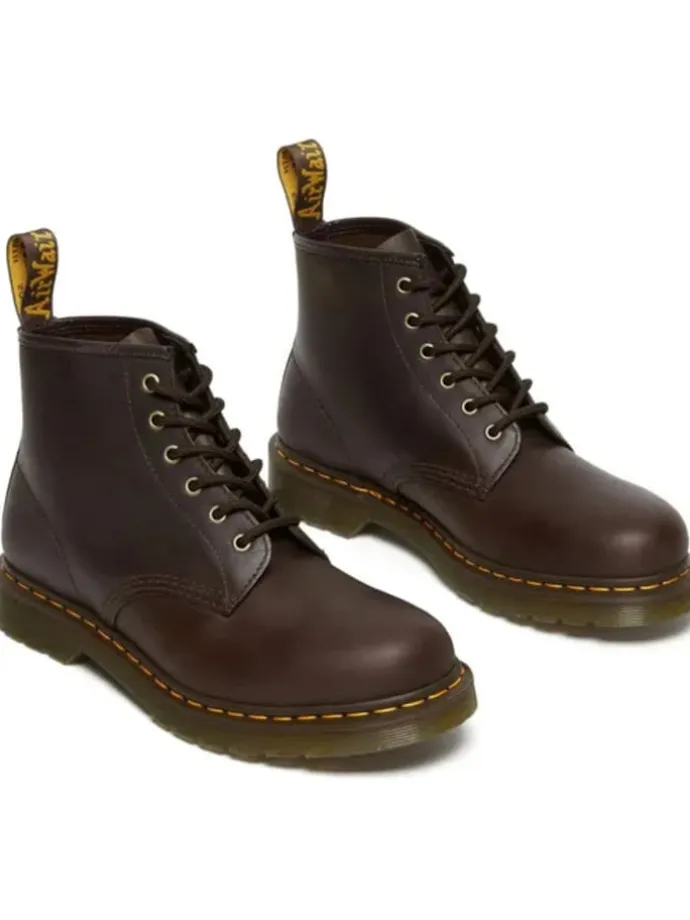 Braune Schnür-Stiefelette mit robuster, griffiger Sohle. Schnürung mit Ösen und hintere Pull-Tabs sorgen für einfaches An- und Ausziehen. Kontrastnaht am Sohlenrand macht den Look deutlich.