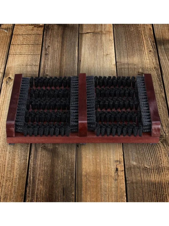 – Schuhabstreifer aus Holz mit Kunststoff-Bürsten
