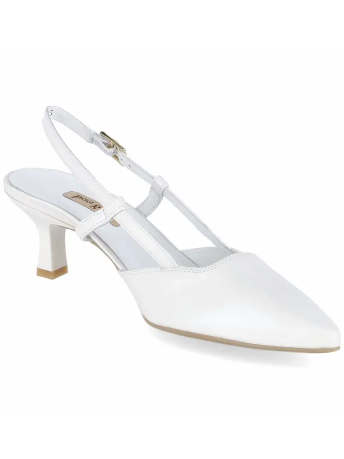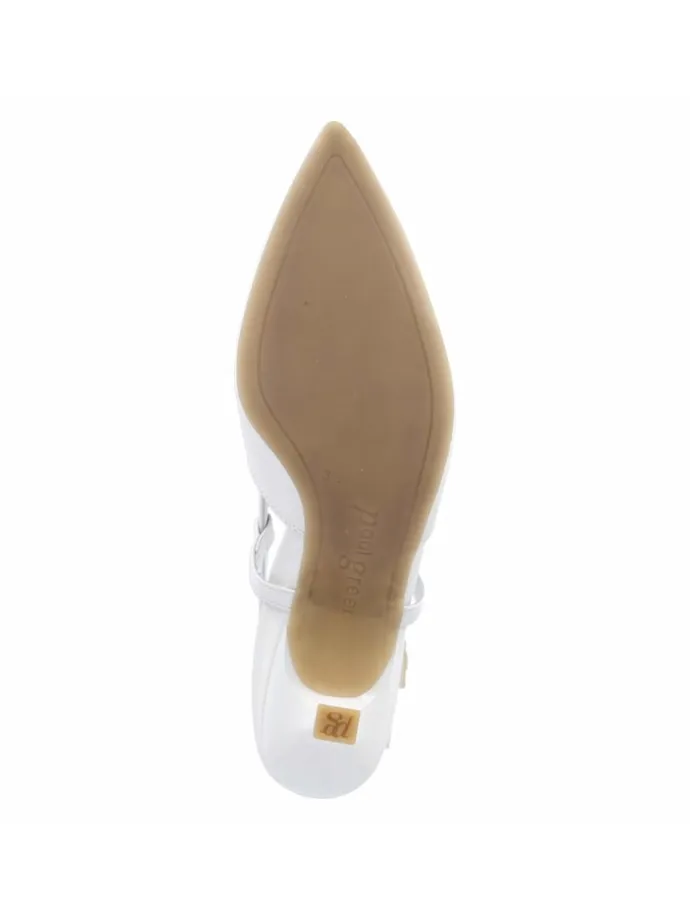 Ein moderner Allrounder: Die weißen Slingpumps von Paul Green setzen auf klare Formen und komfortable Eigenschaften. Langlebiges Echtleder in glatter Ausführung trifft auf eine spitz geformte Vorderkappe, dazu verleiht der 6 cm hohe Trichterabsatz in Sanduhrenoptik eine elegante Höhe mit zuverlässiger Balance. Die weiche Decksohle aus Leder unterstützt das Fußwohl, die flexible Laufsohle begleitet den Schritt dynamisch, und das geringe Gewicht erhöht die Leichtigkeit beim Tragen. Ein verstellbarer Riemen mit Schnalle und Elastikeinsatz sorgt für sicheren Sitz, die Passform fällt normal aus. Das frische Weiß wirkt als Aufheller im Outfit und fügt sich nahtlos in Minimal- bis Occasion-Looks. Modetipp: Mit Midirock in Pastell und feinem Cardigan entsteht ein feminines Ensemble.