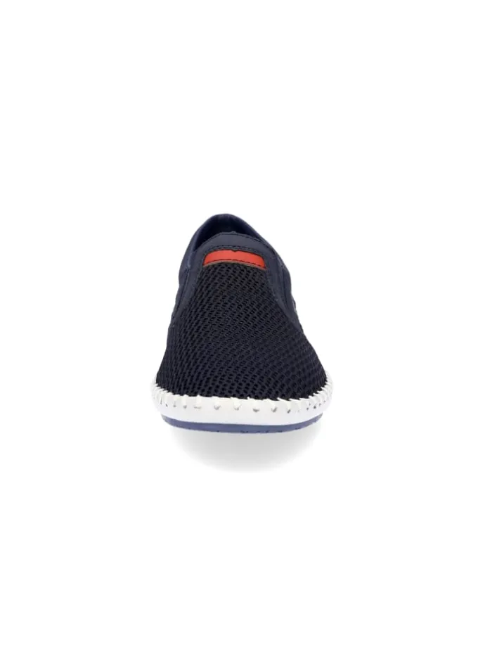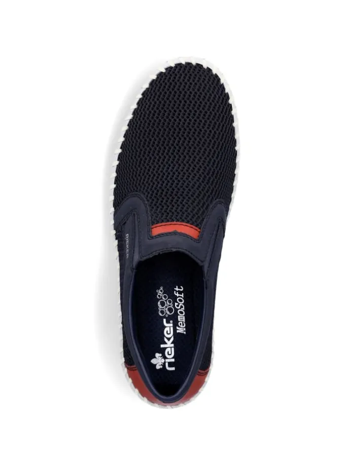 Rieker Herren Slipper aus Lederimitat und Textil in Blau mit Memofußbett und Gummizug.
