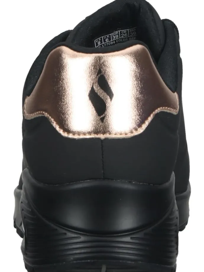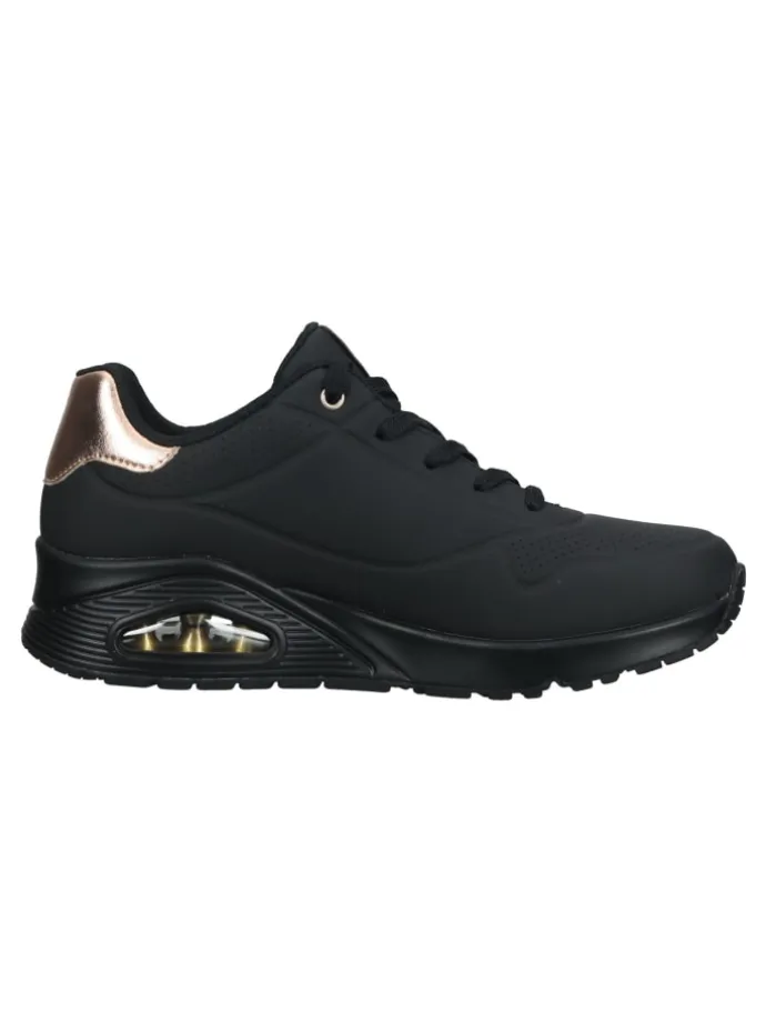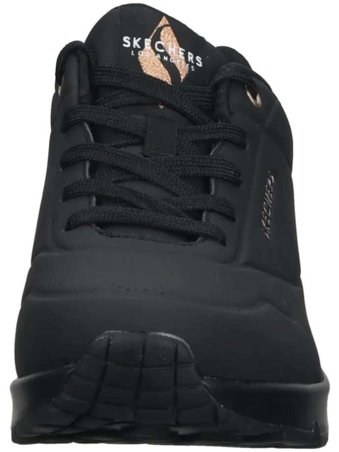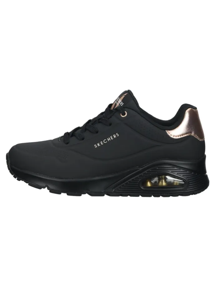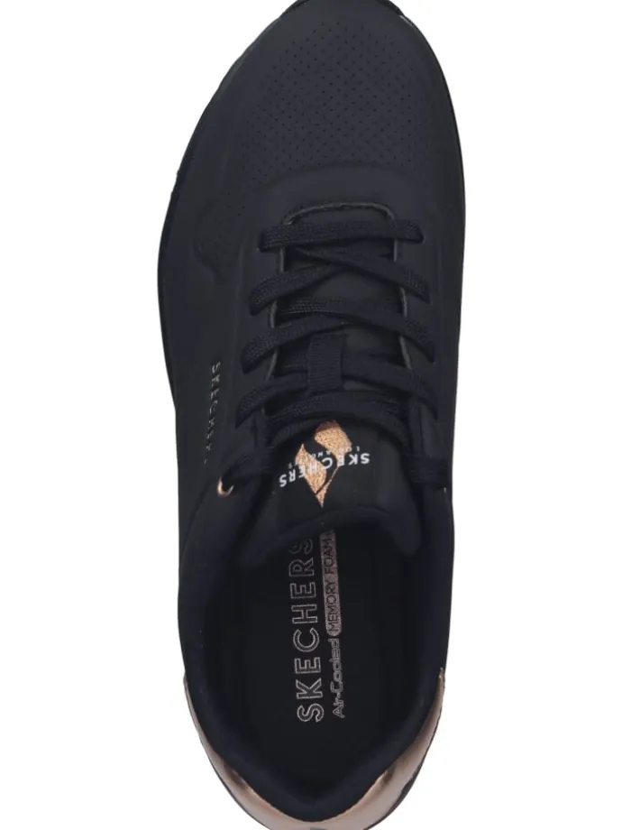 Ein cooler Sneaker von Skechers der einfach zu jedem Outfit kombiniert werden kann. Mit der AIR-COOLED MEMORY FOAM Decksohle, die zum einen herausnehmbar ist und zum anderen extrem weich gepolstert und atmungsaktiv ist, sind lange Tage in diesen Sneakern kein Problem. Eine farblich abgesetzte Fersenkappe setzt modische Highlights. Für die extra Portion Komfort sorgt die gummierte Laufsohle mit einem transparenten Luftkammersystem für perfekte Stoßdämpfung bei jedem Schritt.