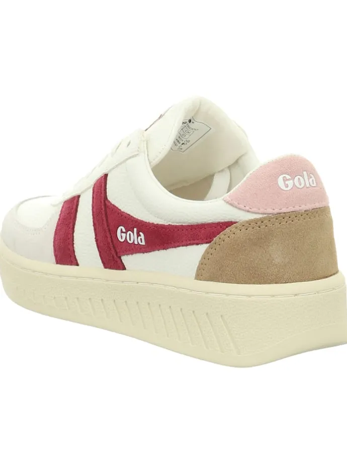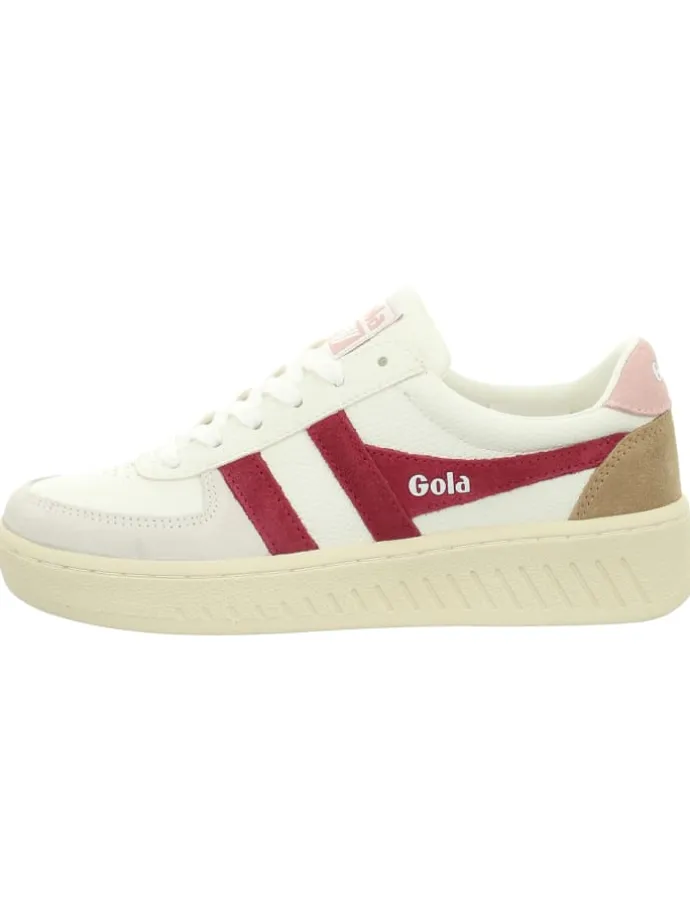 Der Women’s Grandslam Trident von Gola ist ein stylischer Leder-Sneaker, der vielseitig kombinierbar ist und eine tolle Ergänzung für jede Kleiderschrankkollektion darstellt.Sneaker in Weiß sind mit den charakteristischen Gola-Streifen an den Seiten versehen, die ihnen einen unverwechselbaren Look verleihen. Die auffälligen, farbigen Streifen ziehen sofort die Blicke auf sich und verleihen dem Schuh einen besonderen Touch. Um zusätzliche Robustheit zu gewährleisten, sind die Zehenbereiche mit Wildleder verstärkt.rutschfeste Gummisohle bietet optimalen Halt und ein angenehmes Tragegefühl beim Laufen. Dank der klassischen Schnürung lassen sich die Schuhe individuell an den Fuß anpassen.den Women’s Grandslam Trident besitzt du zeitlose Klassiker, die dich durch deine Freizeitaktivitäten und den Alltag begleiten und dabei stets einen stilvollen Auftritt garantieren.
