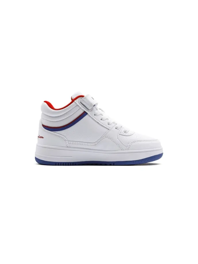 Die CHAMPION RD18 MID B PS Sneaker in komplett Weiß verkörpern den klassischen Basketball-Style für junge Sportler. Die Mid-Top-Silhouette kombiniert Schnürung und Klettverschluss für optimalen Halt und Komfort. Das strapazierfähige Kunstleder-Obermaterial überzeugt durch seine Langlebigkeit und den cleanen Look, der vielseitig kombinierbar ist. Die weiche Innensohle und die griffige Gummisohle sorgen für angenehmes Tragegefühl und sicheren Stand. Perfekt für Schule, Freizeit und sportliche Aktivitäten.
