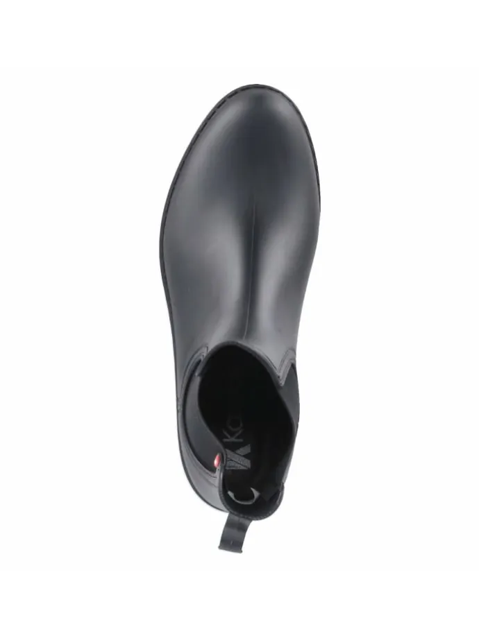Als vielseitiger Allrounder präsentiert sich dieser Chelsea-Boot von Kaerlek in klassischem Schwarz mit zeitgemäßer Note. Der wetterfeste Material-Mix ist wasserabweisend und robust, eine verstärkte Ferse und die profilierte Laufsohle sorgen für verlässlichen Halt. Der 3 cm hohe Blockabsatz bietet ein angenehmes Standgefühl, die runde Spitze bleibt elegant. Elastische Seiteneinsätze geben Flexibilität, die Anziehlasche erleichtert den Einstieg; ohne Verschluss bleibt die Linie clean. Ein austauschbares, gepolstertes Wechselfußbett unterstützt bei langen Tagen, zugleich fällt der Schuh schmaler aus und sitzt nah am Fuß. So gelingt der Spagat zwischen Komfort und Präzision. Modetipp: Ton-in-Ton zu schwarzer Skinny, Feinstrick und einem grauen Oversize-Mantel entsteht ein monochromes, urbanes Ensemble.