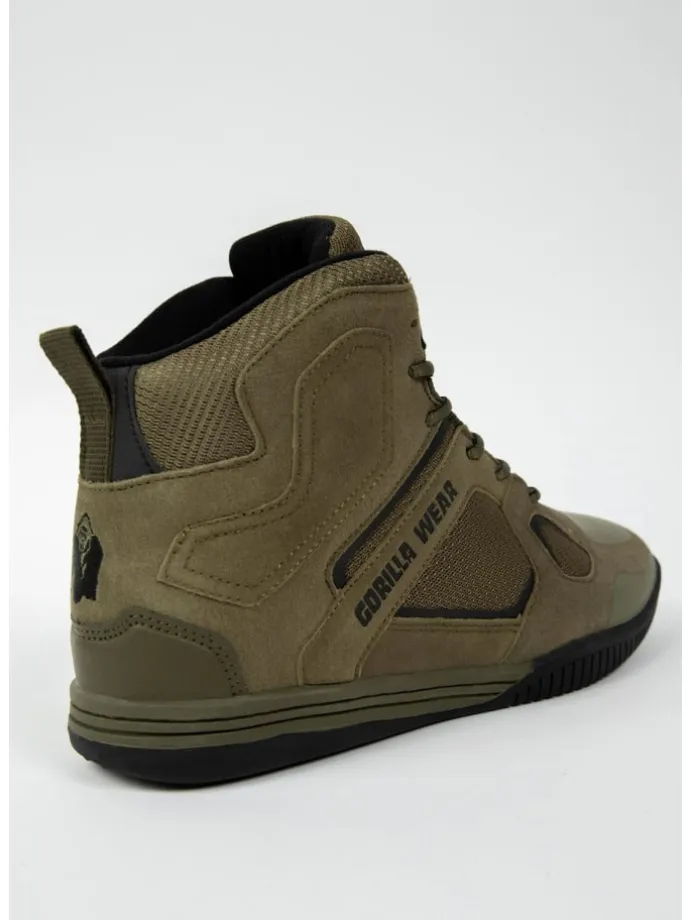 Die Troy High Tops sind für Training und Alltag konzipiert. Diese Unisex-Schuhe bieten maximalen Halt und Schutz beim schweren Heben, sind aber auch für den täglichen Gebrauch sehr bequem. Das unterstützende High-Top-Design und das weich gepolsterte Interieur bieten Knöchelschutz und höchsten Komfort. Die Schuhe haben einen verstärkten Absatz, um Stabilität und Schutz des Rückfußes zu gewährleisten. Die genähte und geklebte Sohle hat eine ultimative Dämpfung, die für schweres Heben angenehm ist. Dank seiner Dämpfung ist es auch ideal für den Alltag geeignet. Die Außenseite aus Wildleder ist mit verstärkten Teilen versehen und verfügt über atmungsaktive Netzbereiche für maximale Belüftung. Verfügbar in Armeegrün, Schwarz/Grau, Schwarz/Rot und Weiß. Die Troy High Tops unterstützen dich, wo und wann immer du willst!