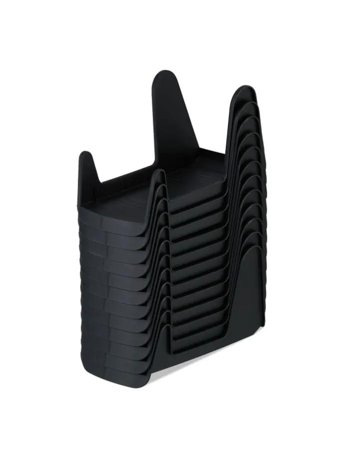 Die praktischen Schuhstapler im 12er Set bringen Ordnung in Dein Schuh-Chaos. Dank der rutschfesten Fläche und dem unteren Stauraum kann ein Schuhpaar bequem übereinander gestapelt werden, wodurch Du den Platz im Schuhregal effizienter ausnutzt. Zudem bleiben die Schuhe vor Schmutz und Druckstellen verschont. Die Schuhhalter eignen sich für eine Vielzahl flacher Schuhpaare wie Sneaker, Hausschuhe, Sandalen o. Ä. Dank des robusten Kunststoff Materials stehen die Schuhablagen sicher und stabil.