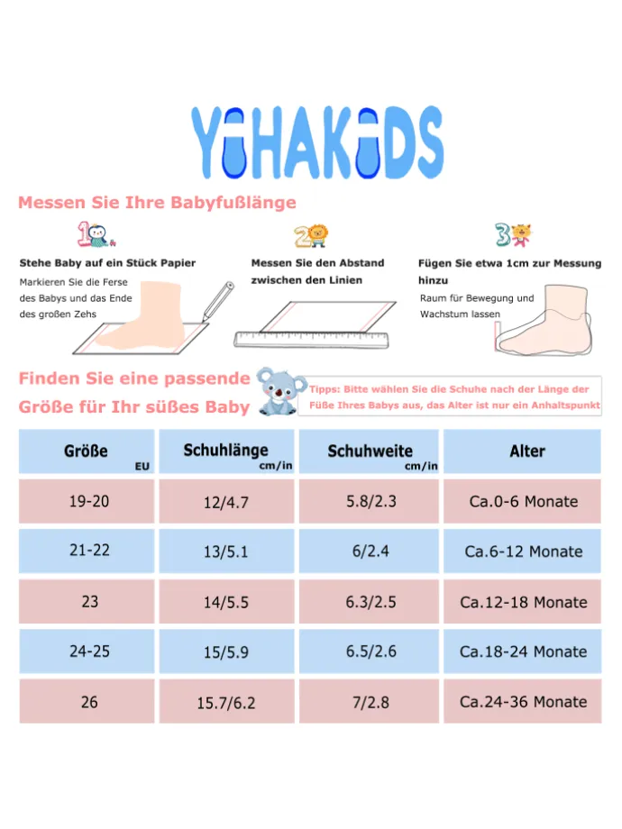 Knöchelriemen garantiert, dass die Schuhe auch beim Spielen und Krabbeln nicht verrutschen. Diese Lederschuhe sind die perfekte Wahl als Hausschuhe,Krabbelschuhe oder erste Lauflernschuhe – ein liebevolles Geschenk für jedes Baby und Kleinkind.