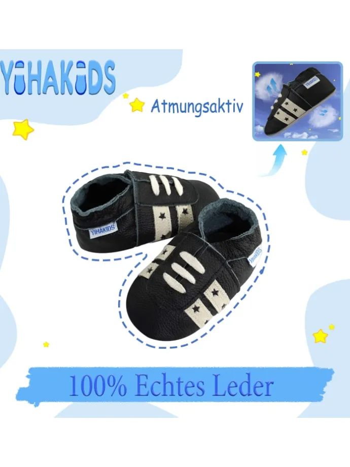 Unsere Baby-Krabbelschuhe aus hochwertigem Echtleder wurden speziell für kleine Entdecker entwickelt. Das weiche Material schmiegt sich sanft an die Füße an und ermöglicht natürliche Bewegungsfreiheit – ideal für die ersten Krabbel- und Laufversuche.