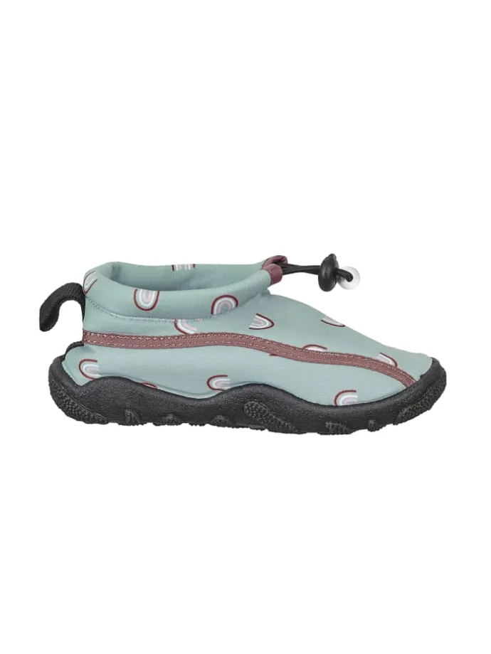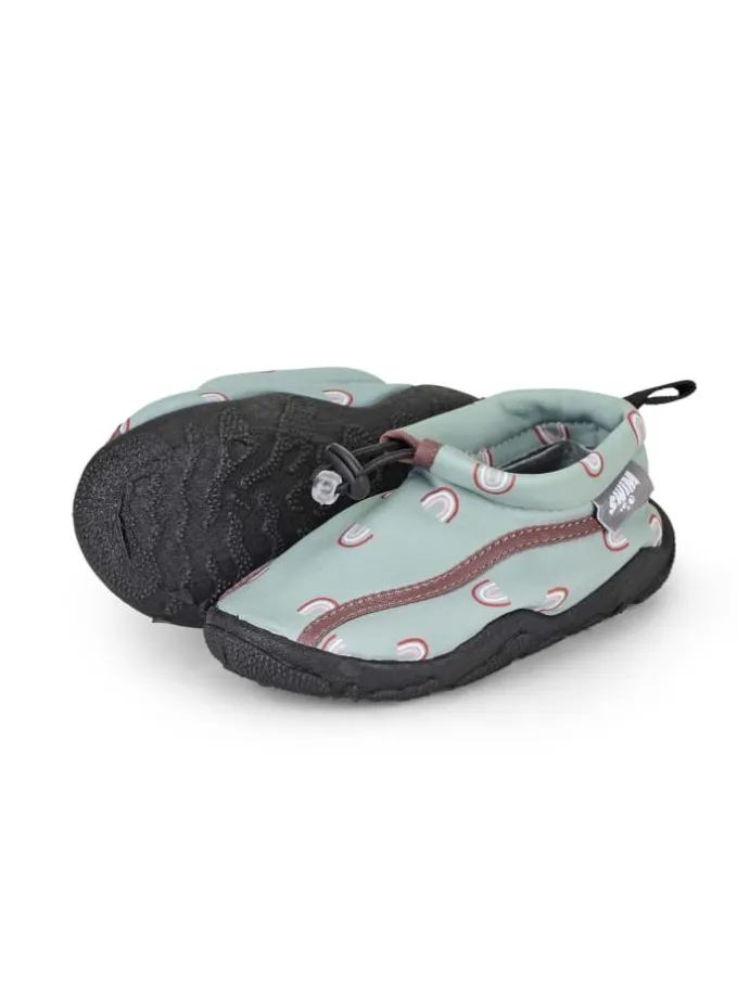 Badeschuhe aus Funktionsmaterial bedruckt mit Regenbogen /// mit Kordelstopper /// und einer rutschfesten Sohle