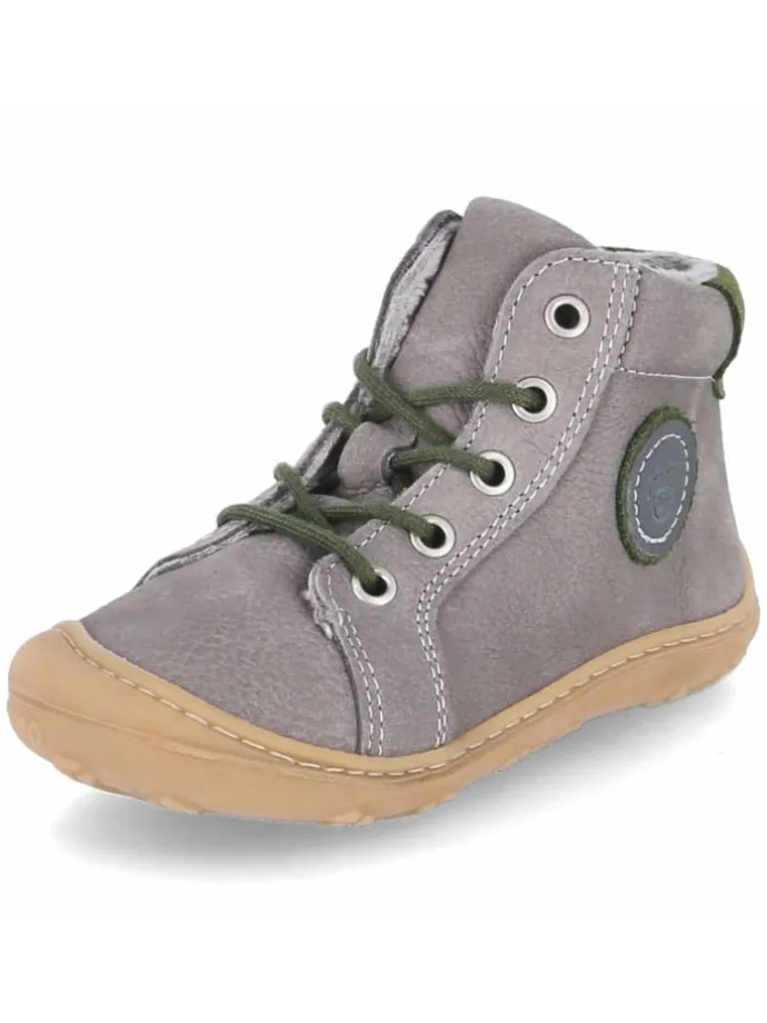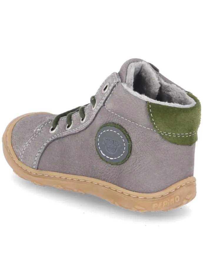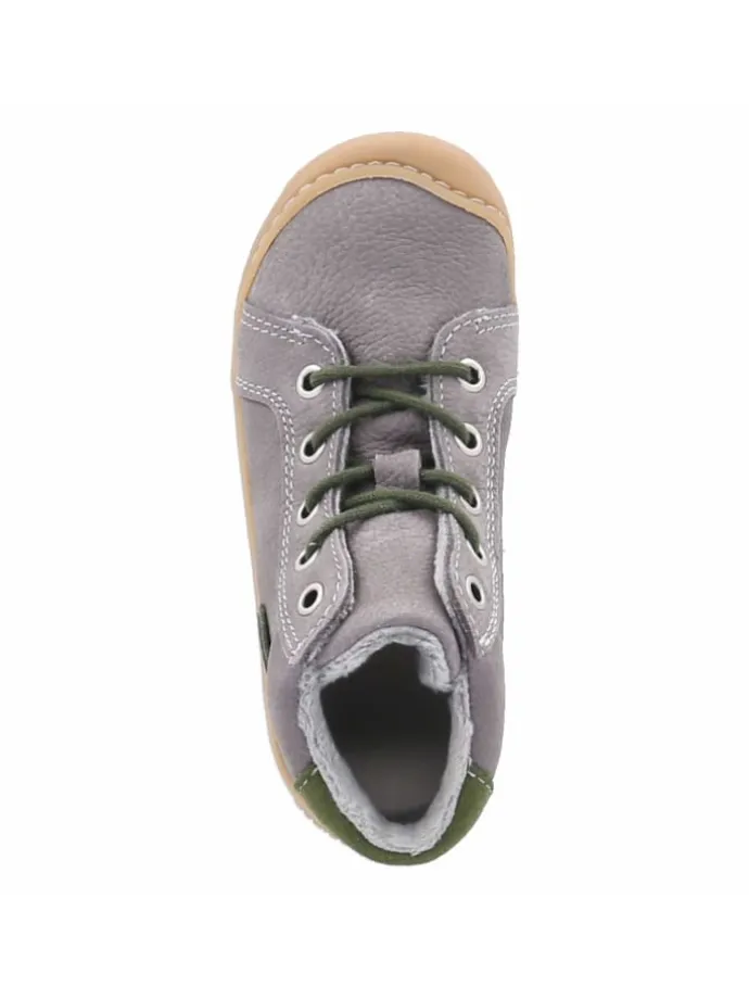 Als verlässlicher Laufpartner für die ersten Schritte überzeugt GEORGIE durch durchdachtes Design und wertige Materialien. Pepino setzt auf robustes Echtleder mit samtiger Rauleder-Oberfläche, das in Grau vielseitig kombinierbar ist. Die runde Spitze schenkt Zehenfreiheit, eine flexible, rutschhemmende Sohle mit schützender Kappe unterstützt Balance und Abrollbewegung auf unterschiedlichen Untergründen. Innen sorgt ein weiches, leichtes Teddyfutter für behagliche Wärme; ein gepolsterter Einstieg erhöht den Tragekomfort. Die Schnürung fixiert sicher, die Textil-Decksohle und das herausnehmbare Wechselfußbett sind praktische Details für Pflege, Lüften und Passformcheck. Der Schuh fällt normal aus und hält dem aktiven Alltag kleiner Entdecker souverän stand. Modetipp: Mit Feinstrick-Leggings, Jersey-Kleid und einer kuscheligen Strickjacke entsteht ein liebevoll abgestimmter Herbstlook.