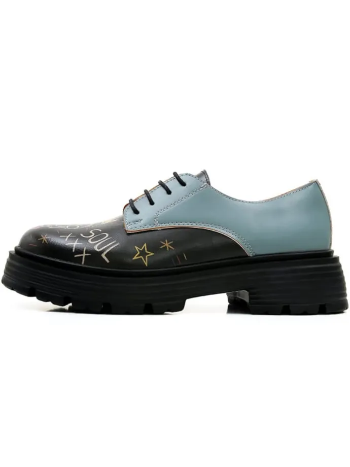 Die profilierte Laufsohle sorgt für guten Halt, während die bequeme Passform angenehmen Tragekomfort bietet – ob beim Stadtbummel, im Café oder auf einer Vernissage. Dieser Schnürschuh bringt künstlerische Ausdruckskraft in deinen Alltag.