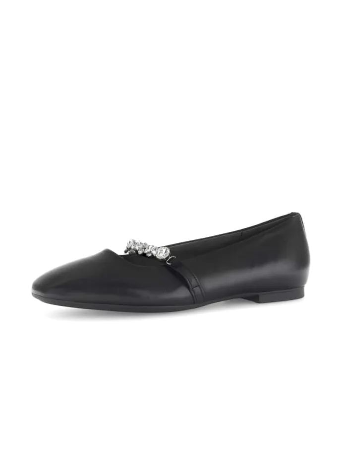 Elegante Ballerinas der Gabor Marke Gabor wollen Frauen am liebsten nie wieder ausziehen. Das Obermaterial in schwarz aus langlebigem Glattleder macht dieses Modell zur extravaganten Wahl. Schuhweite F (normal) bedeutet, dass die Ballerinas perfekt für schmale bis normale Damenfüße geeignet sind.