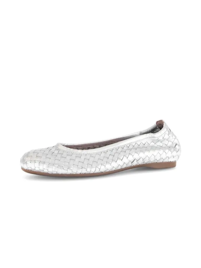 Elegante Ballerinas der Gabor Marke Gabor wollen Frauen am liebsten nie wieder ausziehen. Das Obermaterial in silber aus hochwertigem Effektleder macht dieses Modell zur extravaganten Wahl. Schuhweite F (normal) bedeutet, dass die Ballerinas perfekt für schmale bis normale Damenfüße geeignet sind. Aufgrund der Best-Fitting-Ausstattung freut sich die Trägerin über eine verbreiterte Auftrittsfläche im Ballenbereich und mehr Komfort.