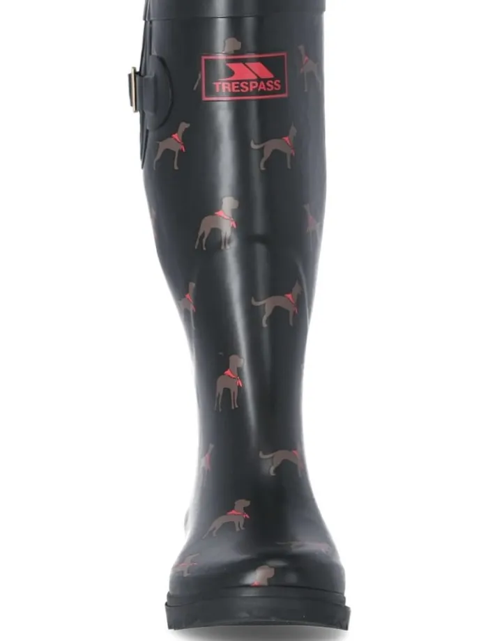 Die Trespass Damen Gummistiefel Samira sind der perfekte Begleiter für regnerische Tage! Mit ihrem niedlichen Hundemuster sind sie nicht nur funktional, sondern auch ein echter Hingucker. Das robuste Material schützt vor Nässe und Schmutz und die profilierte Sohle sorgt für einen sicheren Halt auf rutschigem Untergrund.