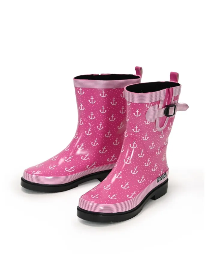 Der pinke MADSea Gummistiefel Anchor mit weißem Anker-Motiv schützt die Füße nicht nur vor Regen und Nässe, sondern hält sie dank der kälteisolierenden herausnehmbaren Einlegesohle auch gemütlich warm.