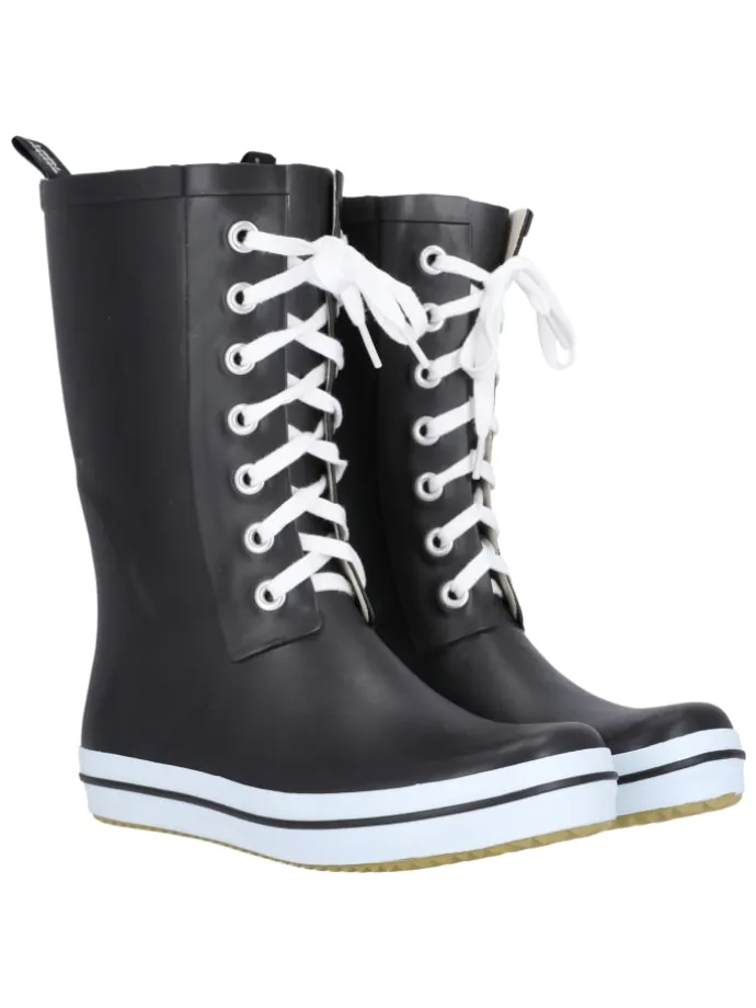 Lassen Sie sich von Sondian, einem erstklassigen Gummistiefel aus dem Hause Weather Report, begeistern. Er eignet sich für Damen und ist ein optimales Produkt für den Alltag. Der Gummistiefel ist offen designed und mit stylisher Schnürung auf der Front versehen. Seine Optik wird von einem zeitlosen Kontrastdesign bestimmt. Das Obermaterial besteht aus Naturkautschuk und Kautschuk, das Innere aus Baumwolle und Textil. Die Sohle wurde aus Kautschuk gefertigt. Ein zusätzliches Plus: der Schuh besitzt ein robustes Allwetterprofil.