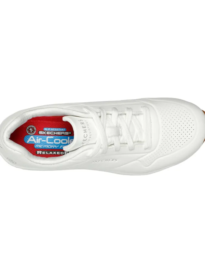 Sei auf der sicheren Seite mit dem sportlichen und bequemen Skechers Work™ Relaxed Fit®: Uno SR. Dieser rutschhemmende Arbeitsschuh verfügt über ein strapazierfähiges, perforiertes Obermaterial aus synthetischem Durabuck, eine Skechers Air-Cooled Memory Foam-Einlegesohle und eine sichtbare Skech-Air® Airbag-Zwischensohle.