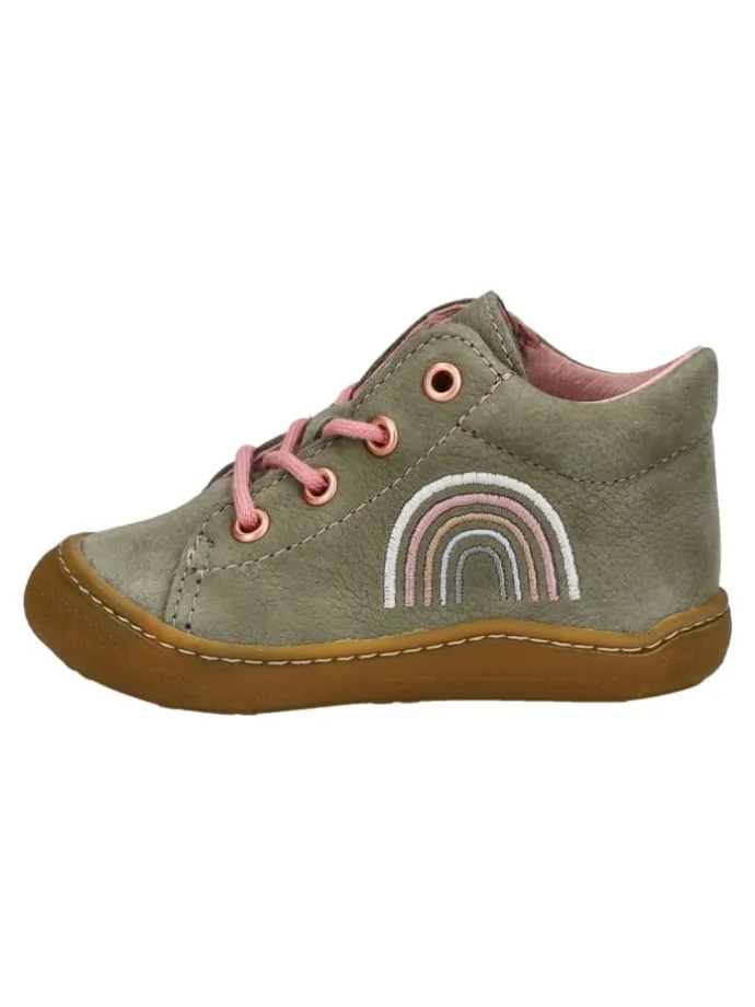 Dieser bezaubernde Lauflernschuh von Pepino ist ein wahres Allroundtalent für kleine, heranwachsende Kinderfüßchen. Das Obermaterial und Innenfutter besteht aus hochwertigem, atmungsaktivem und flexiblem Leder, das sich optimal anpasst und Feuchtigkeit absorbiert. Die flexible Sohle aus rutschhemmendem Naturkautschuk geht mit jedem Schritt mit und bietet selbst bei unsicherem Gehen einen optimalen Komfort. Die verstärkte Zehen- und Fersenpartie bietet Halt und Schutz vor Stößen. Die herausnehmbare Decksohle besteht ebenfalls aus Leder und ist mit einem bequemen Fersenpolster versehen.