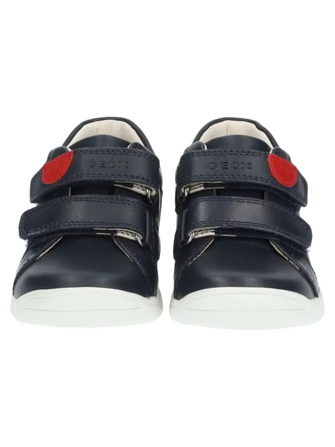 Für die ersten Schritte im Leben präsentiert Geox diesen federleichten Sneaker. Das Modell kommt im angesagten Leder/Textilmix daher. Durch zwei Klettriemen ist die optimale Passform, sowie ein kinderleichtes An- und Ausziehen garantiert. Die gepolsterte Decksohle kann bei Bedarf herausgenommen und getauscht werden. Die Gummisohle ist perforiert und mit einer Spezialmembran mit Mikroporen ausgestattet, diese ermöglicht eine natürliche Transpiration und verhindert, dass Wasser eindringt.