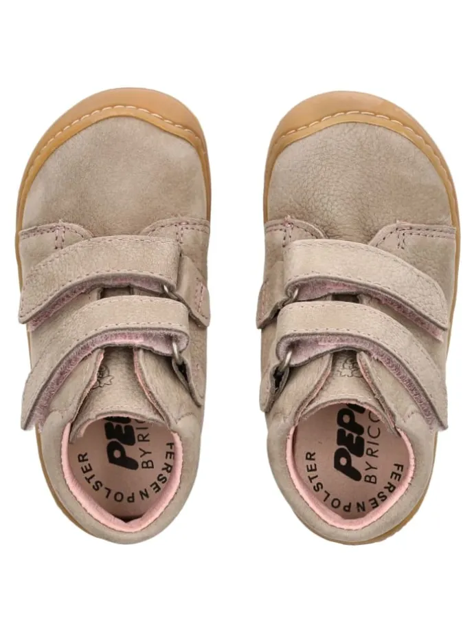 Dieser süße Lauflernschuh von Pepino ist ein wahres Allroundtalent für kleine, heranwachsende Kinderfüßchen. Das Obermaterial und Innenfutter besteht aus hochwertigem, atmungsaktivem und flexiblem Leder, das sich optimal anpasst und Feuchtigkeit absorbiert. Die flexible Sohle aus rutschhemmendem Naturkautschuk geht mit jedem Schritt mit und bietet selbst bei unsicherem Gehen einen optimalen Komfort. Die verstärkte Zehen- und Fersenpartie bietet Halt und Schutz vor Stößen. Die herausnehmbare Decksohle besteht ebenfalls aus Leder und ist mit einem bequemen Fersenpolster versehen. Besonders praktisch ist der Klettverschluss, der das Anziehen enorm erleichtert.