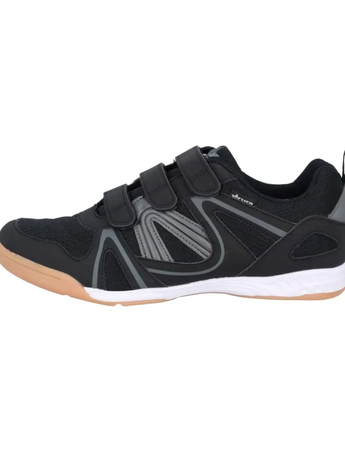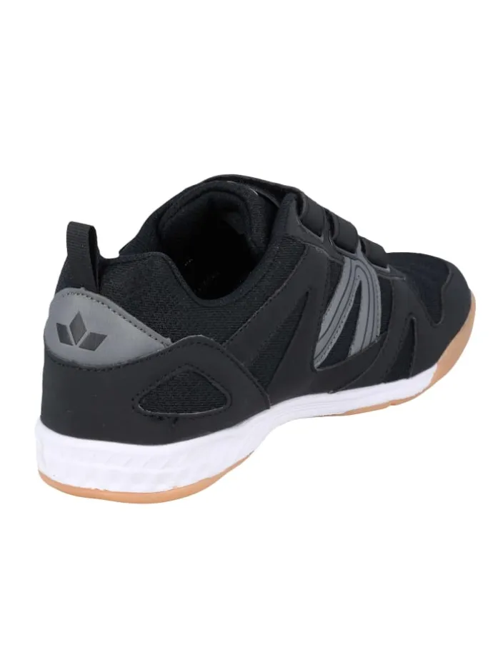 Hallensportschuh Fit Indoor V von Lico; atmungsaktives Obermaterial aus Mesh mit Synthetik-Besätzen; drei Klettverschlüsse am Oberfuß; gepolsterter Schaft für hohen Tragekomfort; weiches Textilfutter; auswechselbare Textileinlegesohle; transparente TPR-Laufsohle für die Halle geeignet