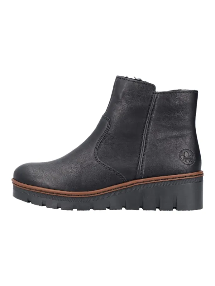 Keilstiefeletten von Rieker – Das Obermaterial aus Kunstleder ist ideal für vielseitige Outfit-Kombinationen. Das Innenenmaterial aus Textil und die robuste Kunststoffsohle runden die Stiefeletten ab.
